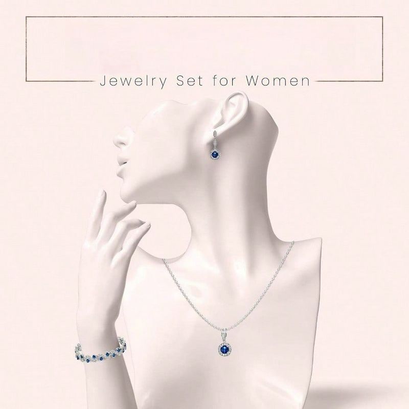 Bridal Jewelry Set: Cubic Zirconia Necklace & Earrings for Bride and Bridesmaid | Wedding Jewelry for Women blue Standard
