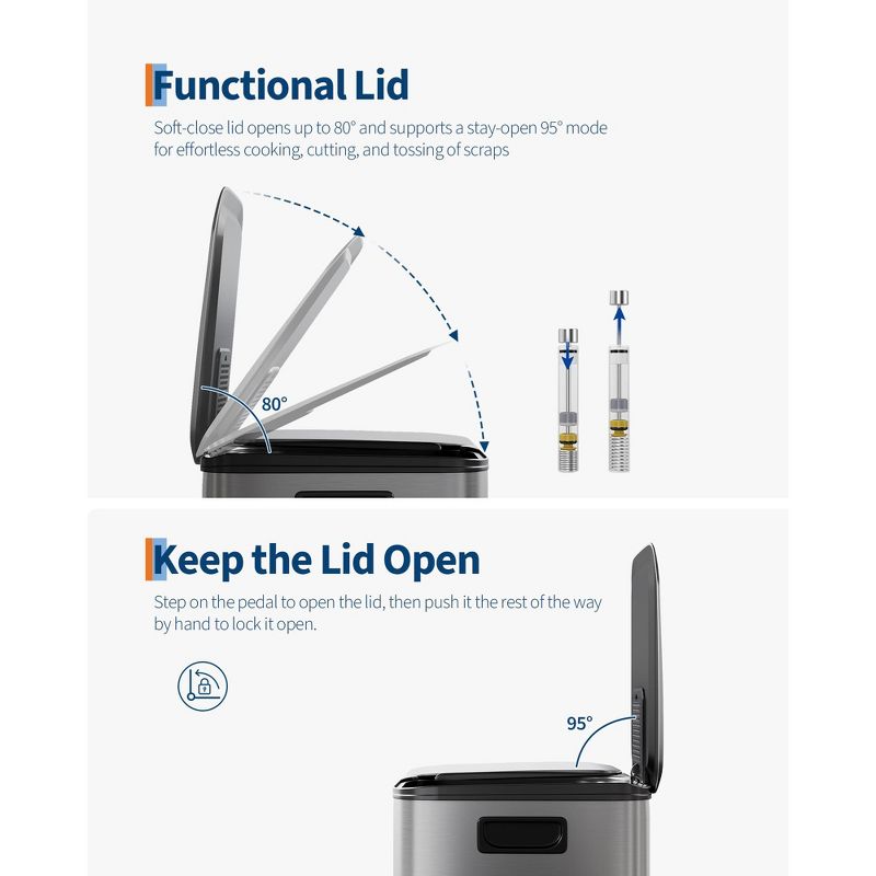Dual Compartment Trash Can, Garbage Can for Kitchen Recycling, Step Trash Bin, Stainless Steel Trash and Recycle Bin Combo with Soft-Close Lid