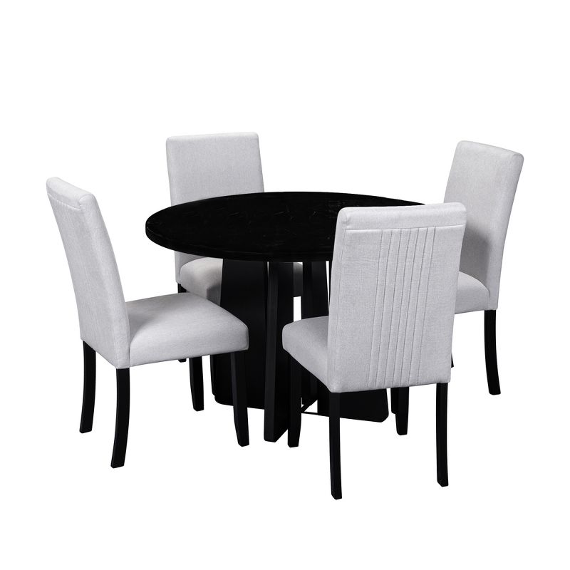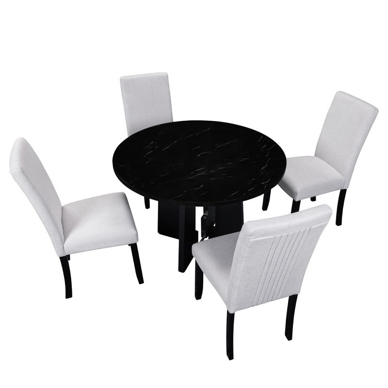 Merax Elegant 5-Piece Round Dining Table Set with Upholstered Chairs