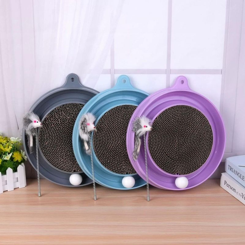 Multi-functional cat scratching board with ball track with spring and ball, anti-scratch furniture artifacts must-have for cat-owning families Grey