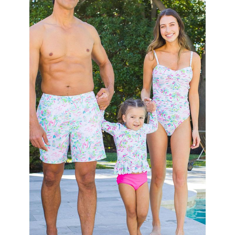 RuggedButts Men's UPF50+ Swim Trunks - Tropical Resort, Men's L