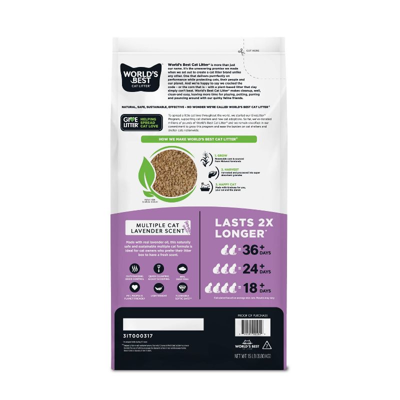 World's Best Cat Litter- Lavender Scented Cat Formula - 15lbs