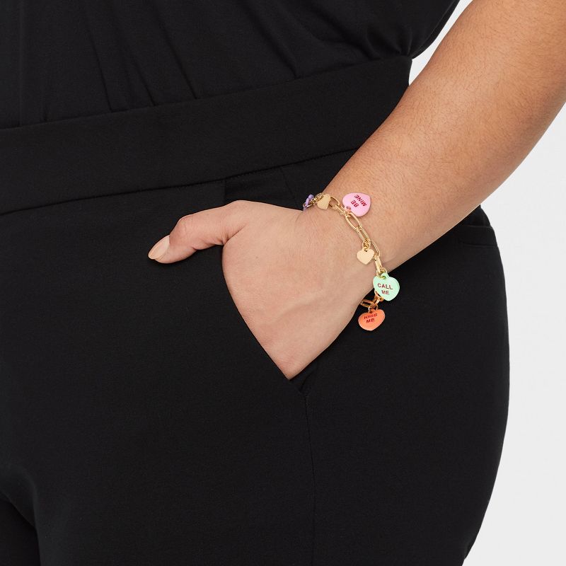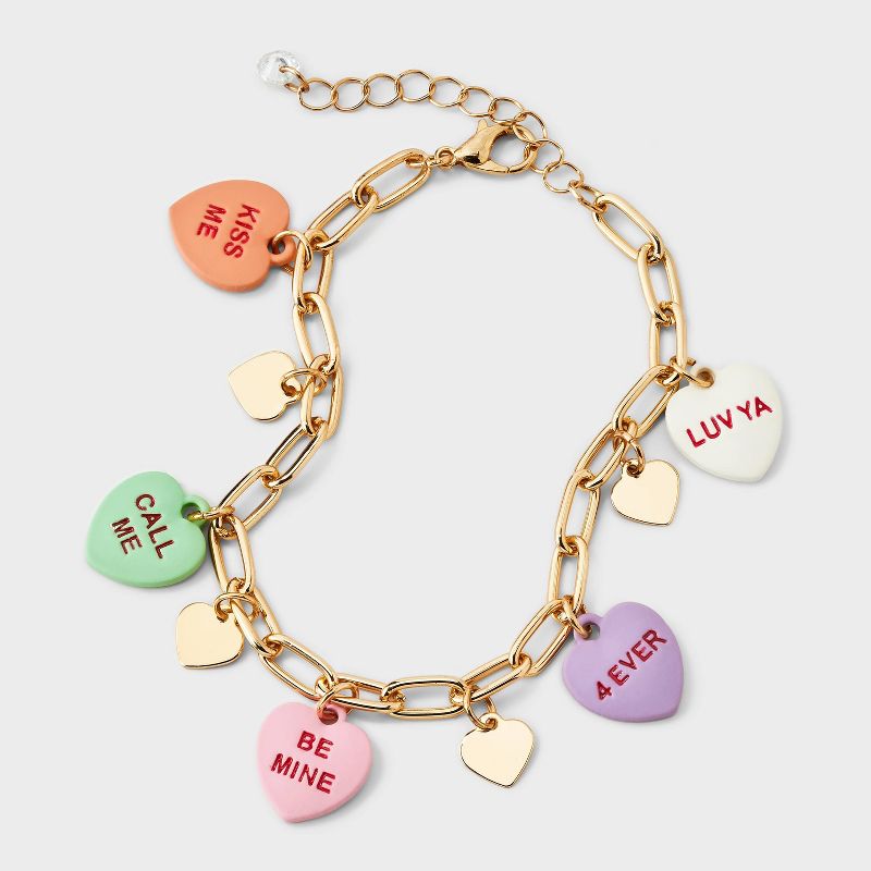 Valentines Mixed Conversation Heart Charm Bracelet - Gold