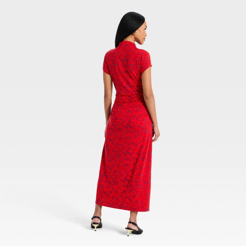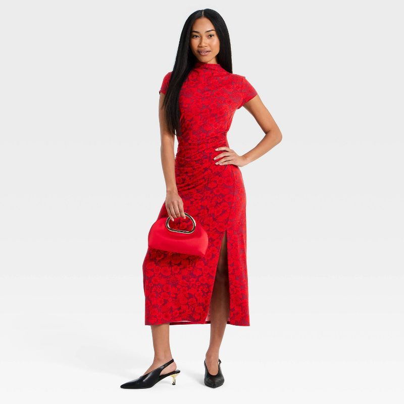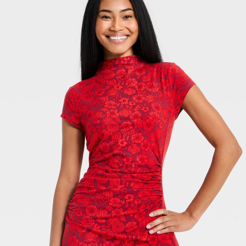 Women's Lunar New Year Cap Sleeve Midi A-Line Dress - Red Floral XL