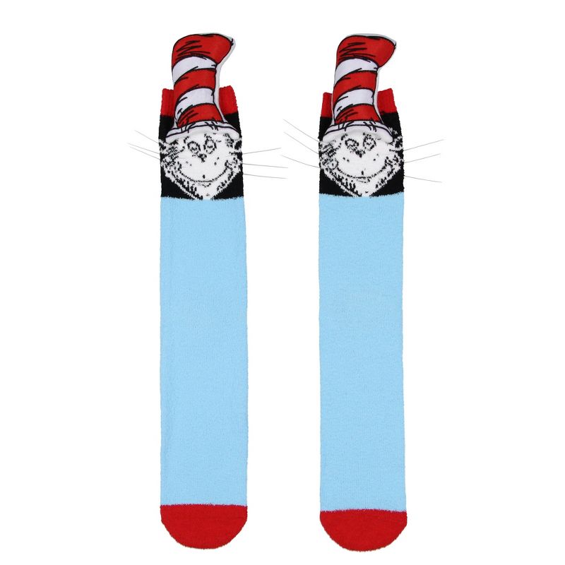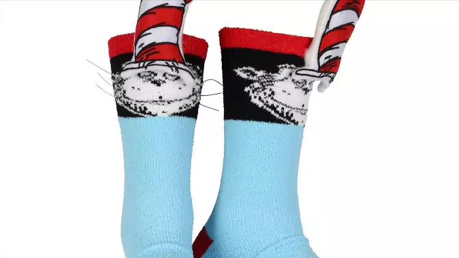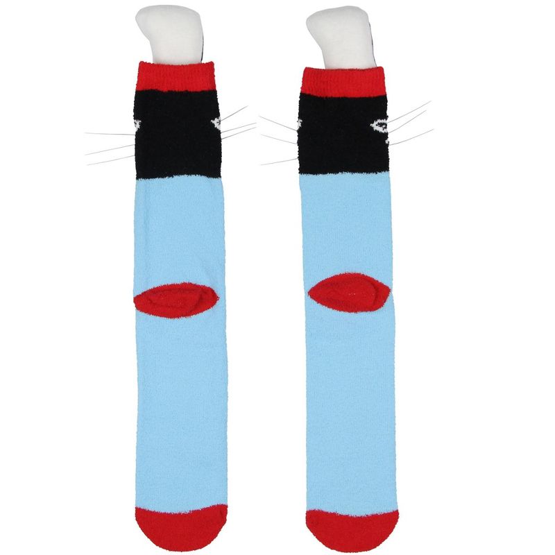 Cat in The Socks Hat 3D Striped Hat Design Chenille Men's Crew Socks