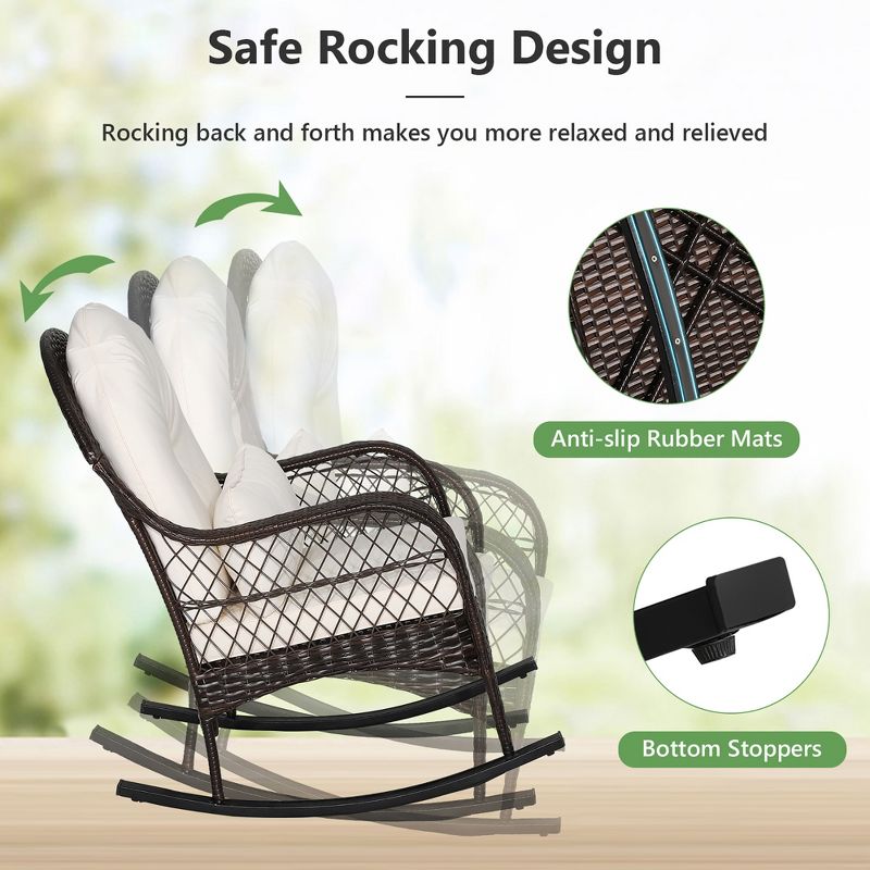 Costway 2PCS Patio Wicker Rocking Chair W/Seat Back Cushions & Lumbar Pillow Balcony White