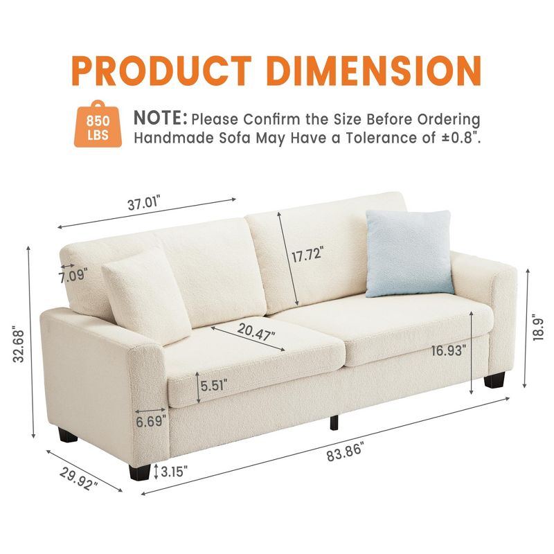 83" Couch for Living Room, Comfy Sofa with Deep Seat, Modern Sofa with Wide Armrest, Removeable Cover, Teddy Fleece 3 Seater Couch for Bedroom