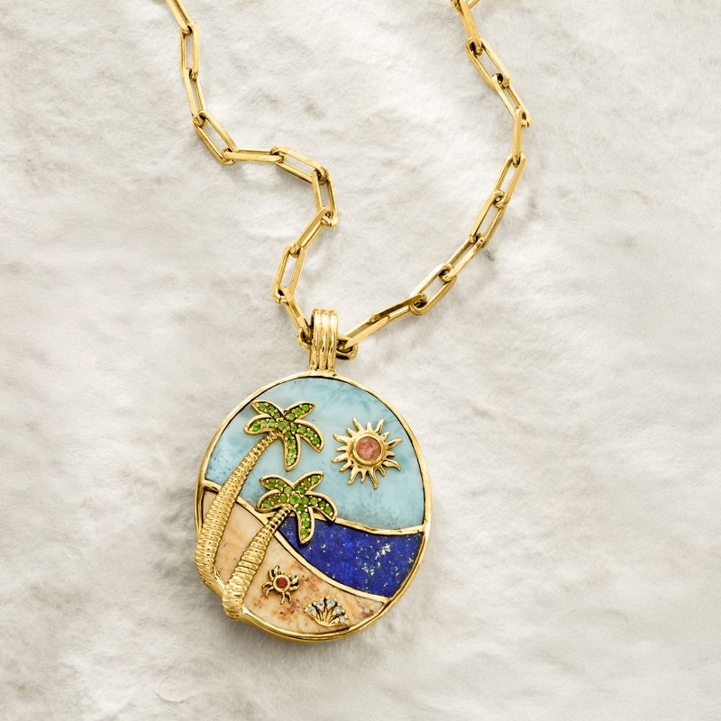 Ross-Simons 0.26 ct. t.w. Multi-Gemstone Beach Pendant Paper Clip Link Necklace in 18kt Gold Over Sterling Size 20