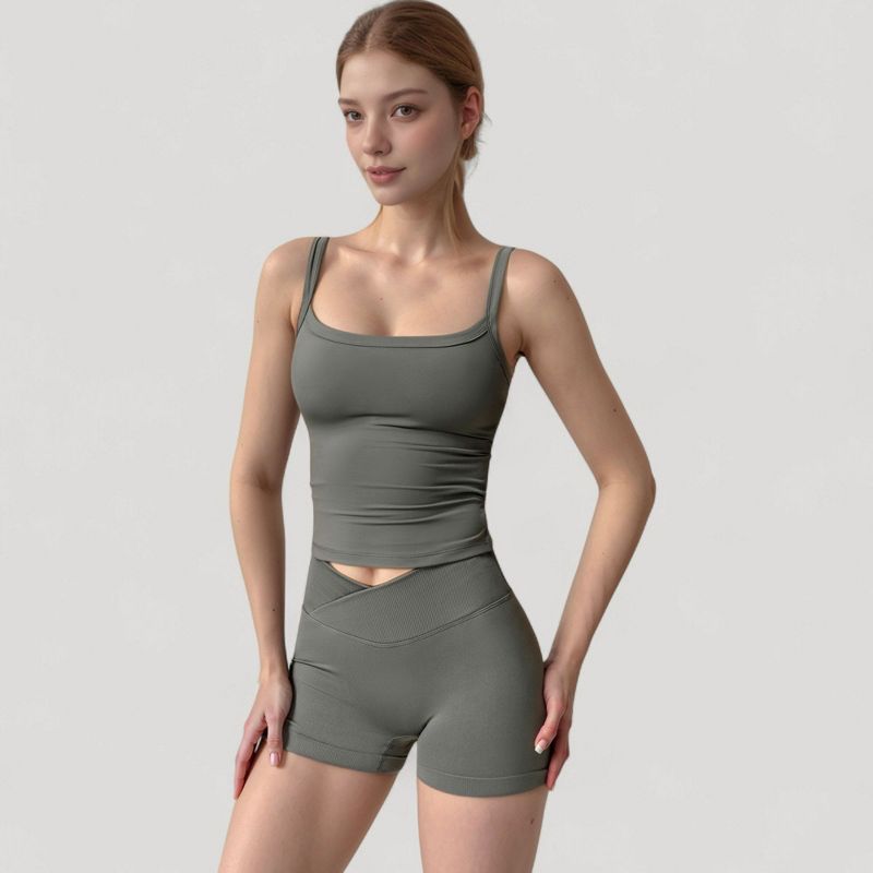 Anna-Kaci Women's Fitted Stretch Camisole Tank Top with Square Neckline and Thin Shoulder Straps - X Large, Gray