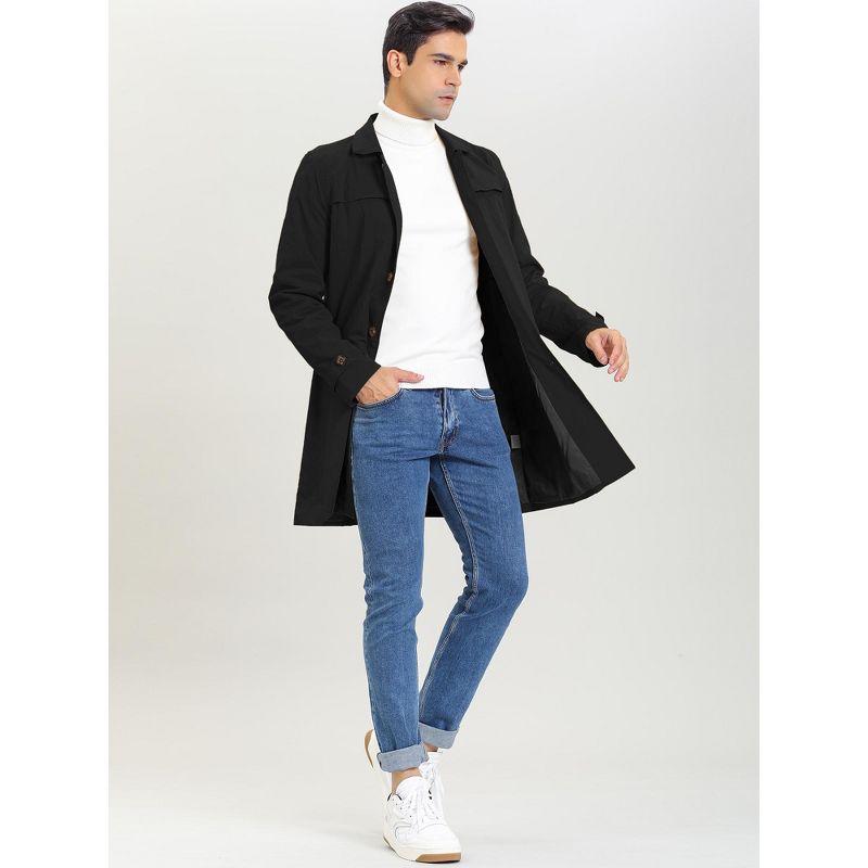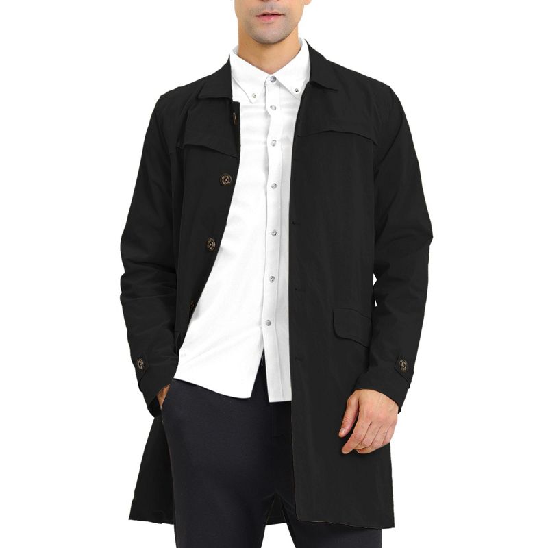 INSPIRE CHIC Men's Lightweight Solid Color Trench Coat Windbreaker Jacket Black Small