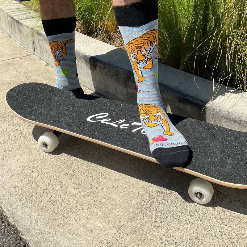 Tiger Playing with Toys Socks (Men's Sizes, Adult Large) from the Sock Panda