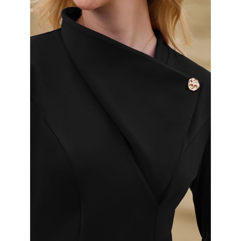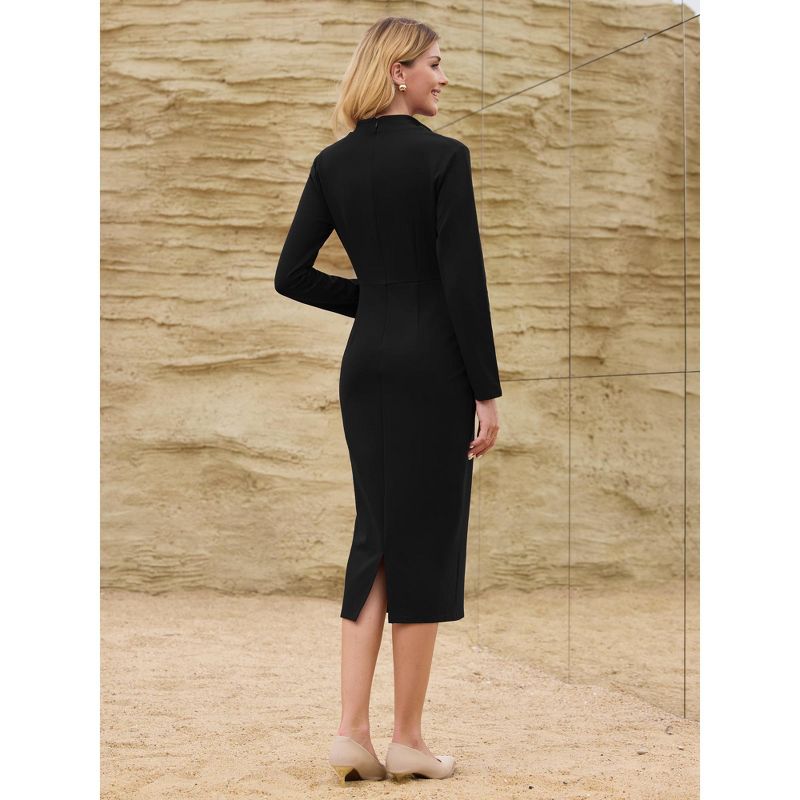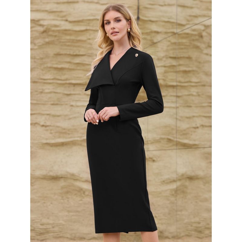 INSPIRE CHIC Women's Elegant Pencil Lapel V Neck Long Sleeve Trendy Work Knee Length Dresses X-Large Black