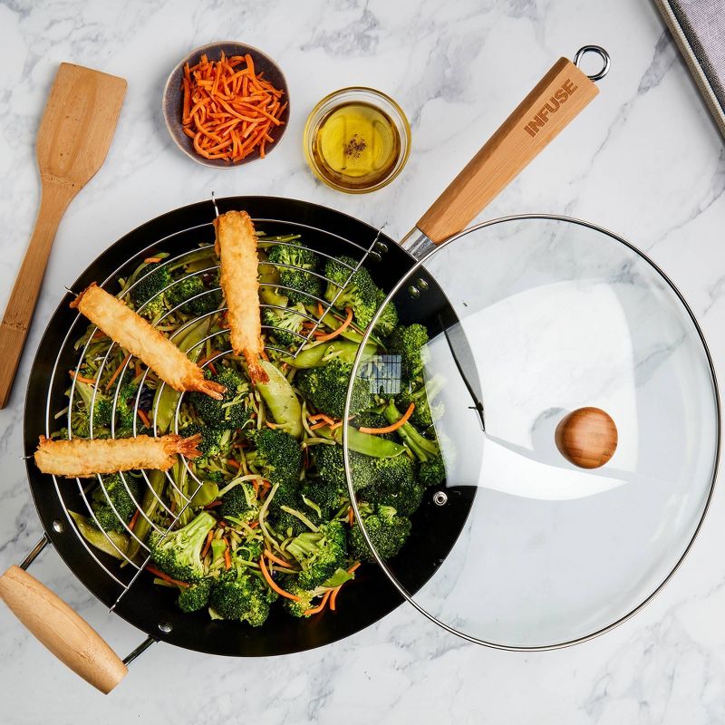 Infuse 4pc Wok Set: Aluminum Cookware, Gas & Electric Compatible, Includes Spoon & Storage Containers
