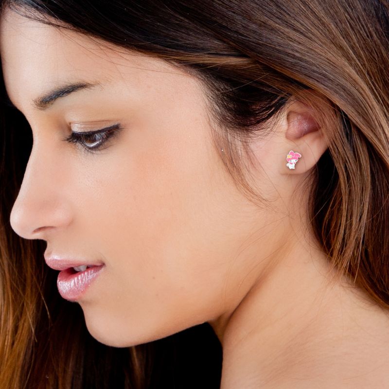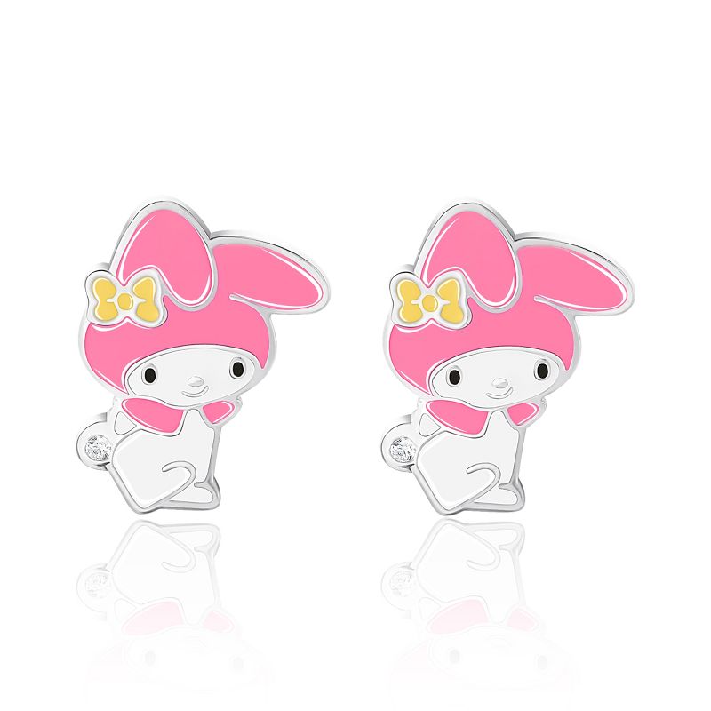 Sanrio Hello Kitty My Melody Brass Flash Plated Enamel and Cyrstal Stud Earrings