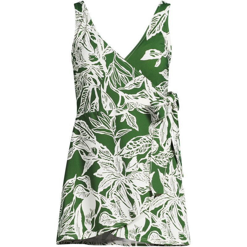 Lands' End Women's Side Tie Mini Swim Dress Swimsuit - 2 - Fusion Green Etched Leaves