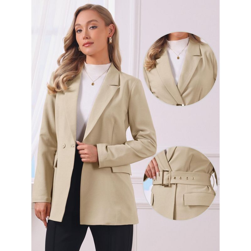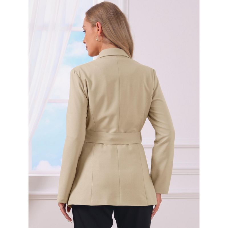 INSPIRE CHIC Women's Long Sleeve Collared Belted Business Casual Suit Jacket Blazer Small Khaki