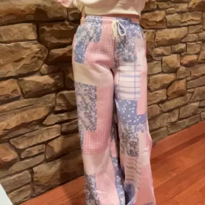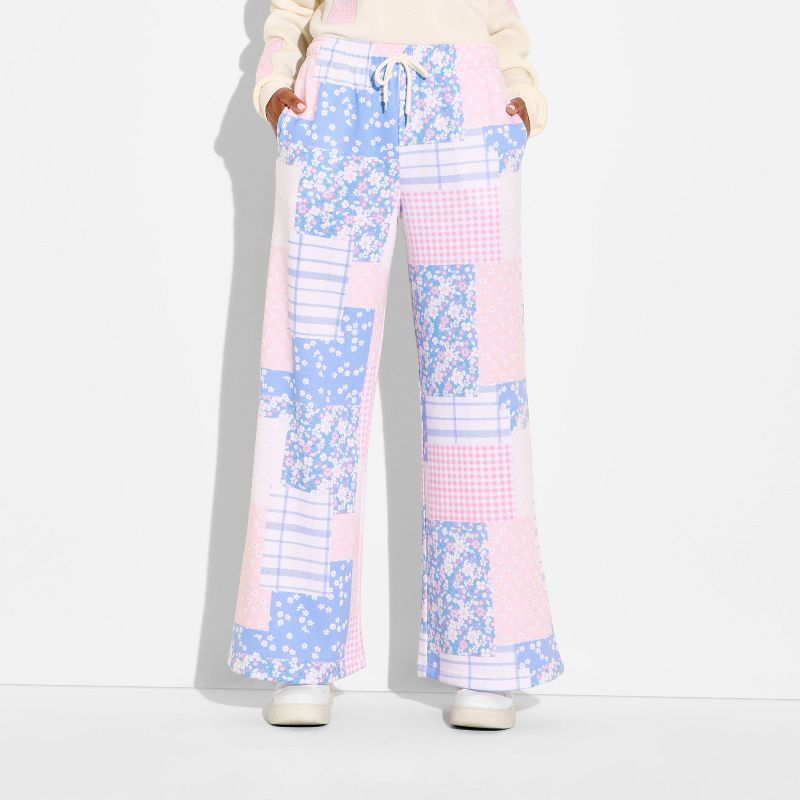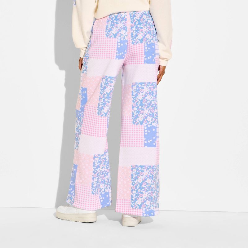 Women's Patchwork Wide Leg Graphic Jogger Pants - Pastels S