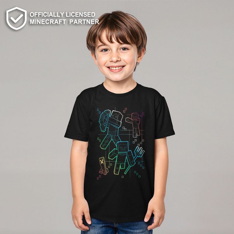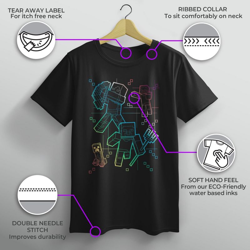Boy's Minecraft Rainbow Characters Lines T-Shirt - Black - Small