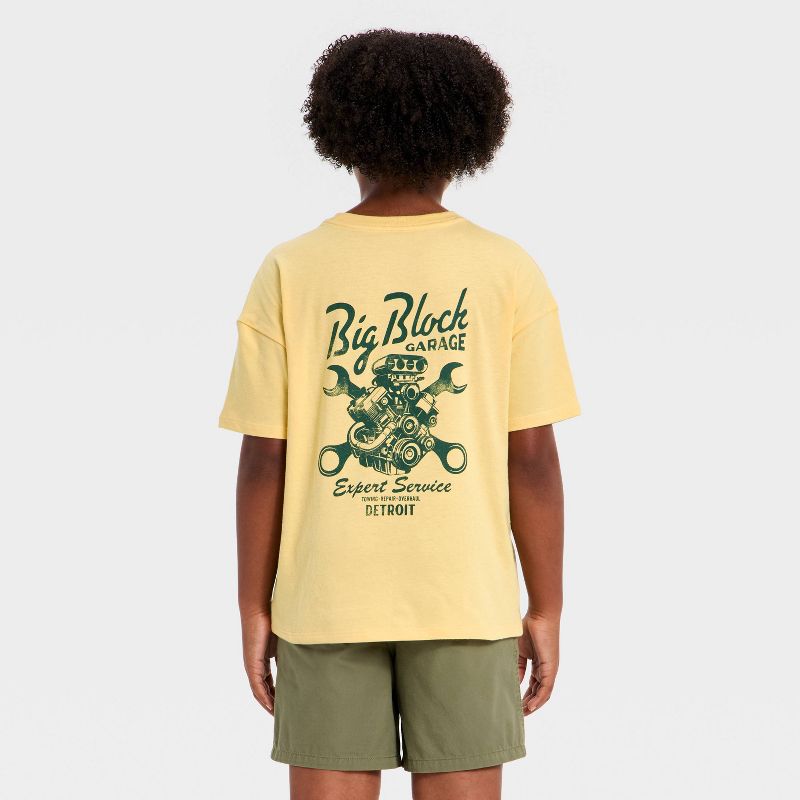 Boys' Short Sleeve Oversized Garage Graphic T-Shirt - Cat & Jack™ Light Gold M