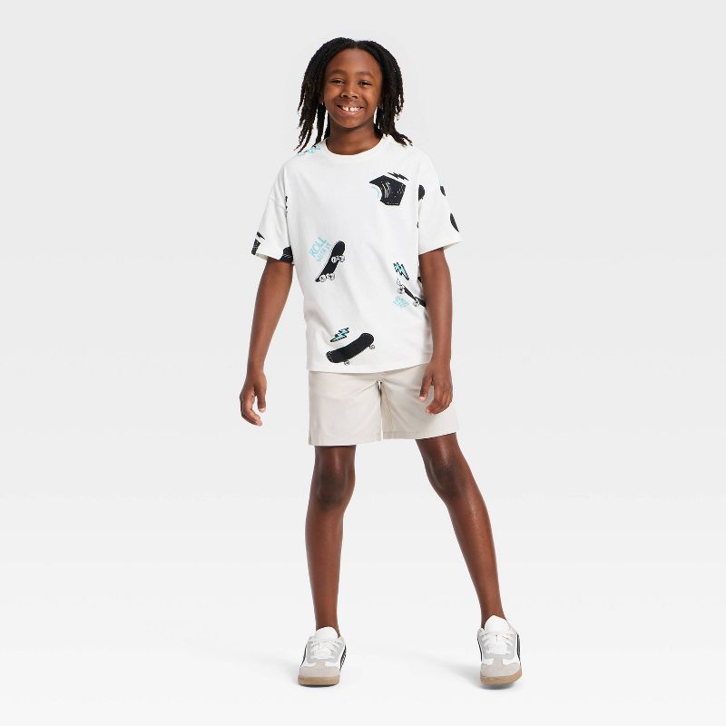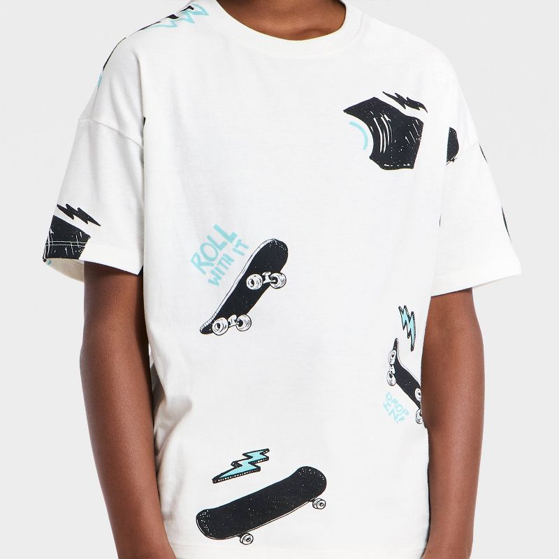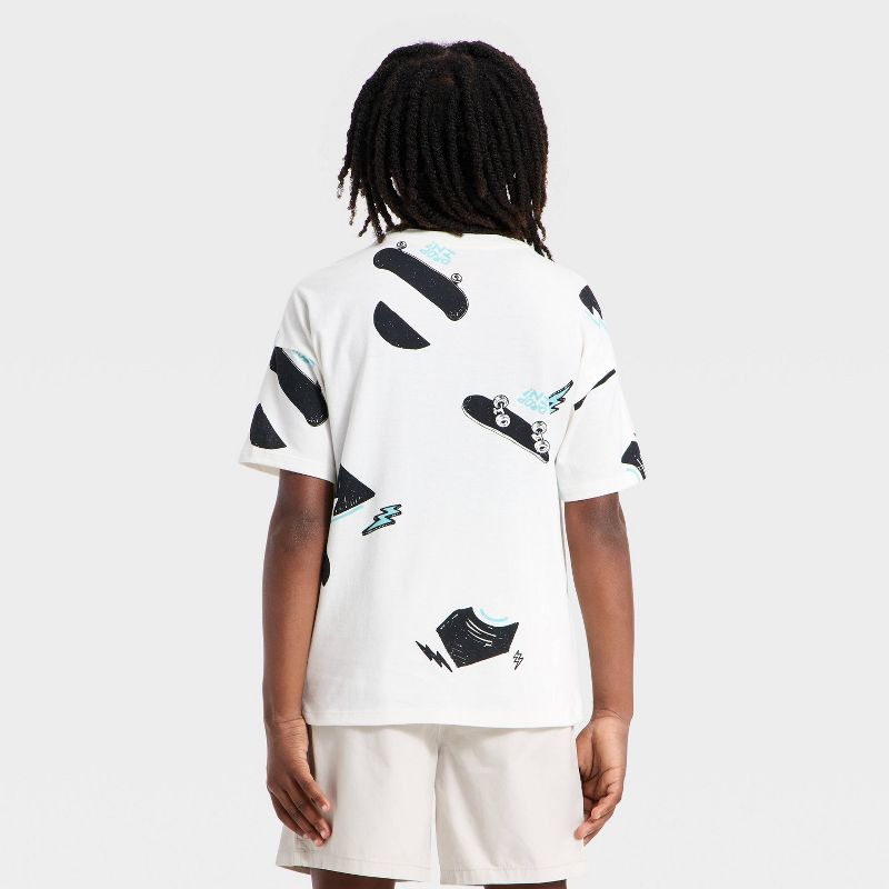 Boys' Short Sleeve Oversized Skateboard Printed T-Shirt - Cat & Jack™ Cream XL Husky