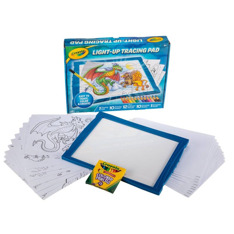 Crayola Light Up Tracing Pad Blue: Kids Drawing & Coloring Kit, Creative Activity, Includes 34 Pieces, Requires 3 AA Batteries