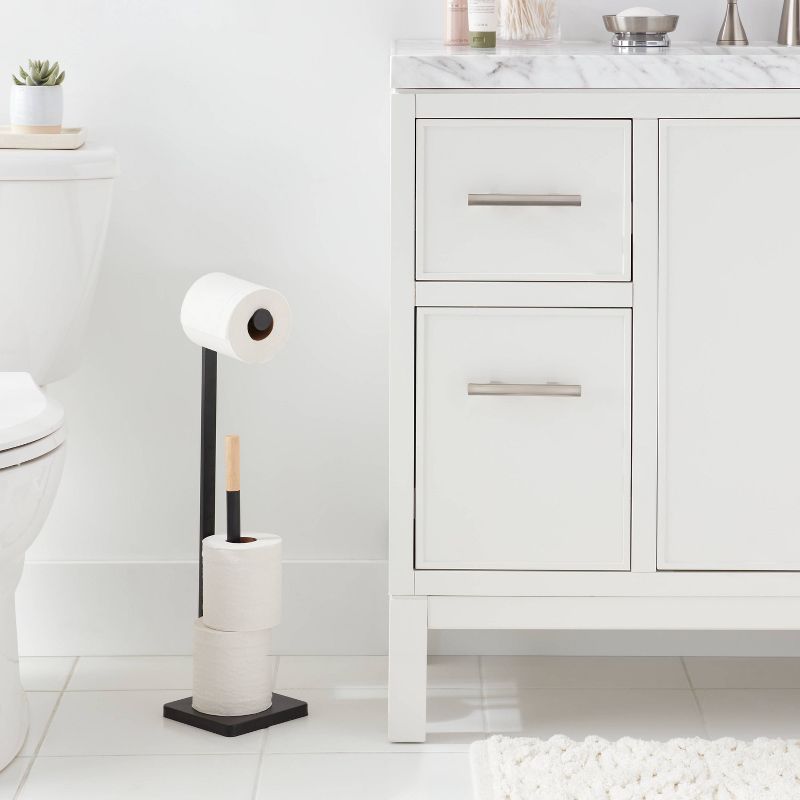 Freestanding Toilet Paper Holder Matte Black - Brightroom™: Steel Construction, 22.99" Tall, Storage Solution