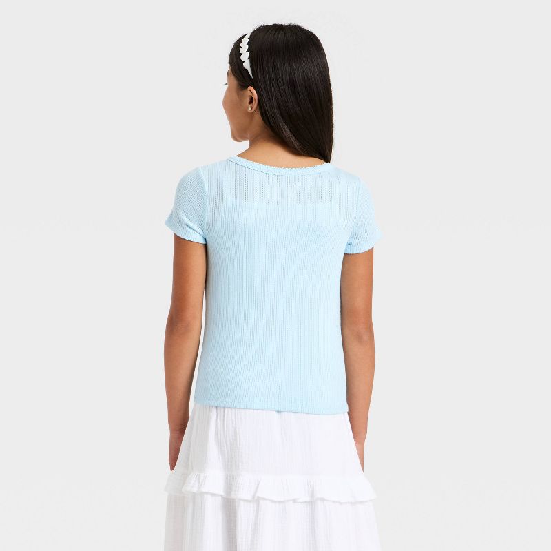 Girls' Button Ribbed T-Shirt - Cat & Jack™ Blue S