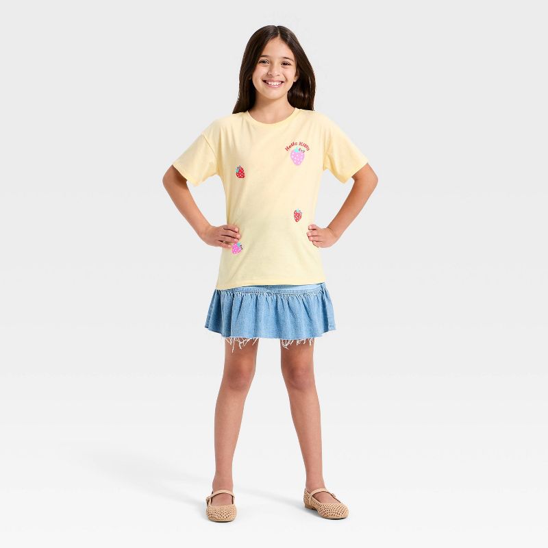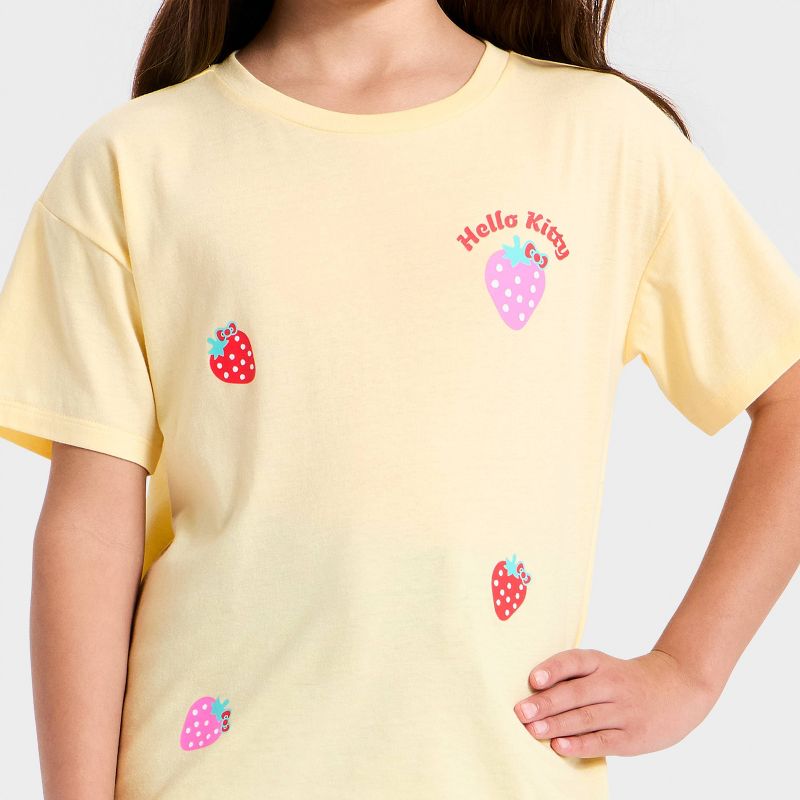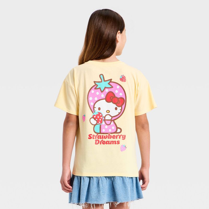 Girls' Sanrio Hello Kitty Strawberry Dreams Oversized Front and Back Graphic Short Sleeve T-Shirt - Yellow M