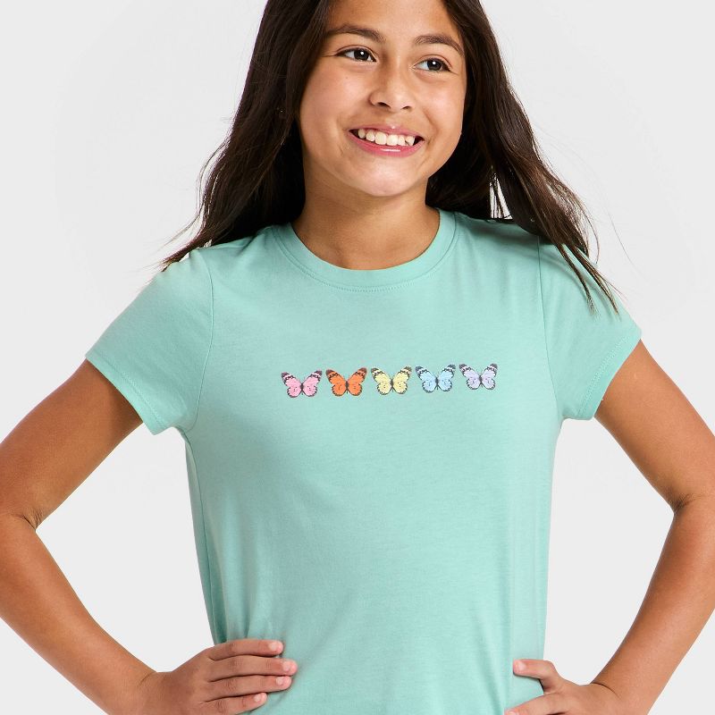 Girls' Short Sleeve 'Butterflies' Graphic T-Shirt - Cat & Jack ™ Dusty Mint M