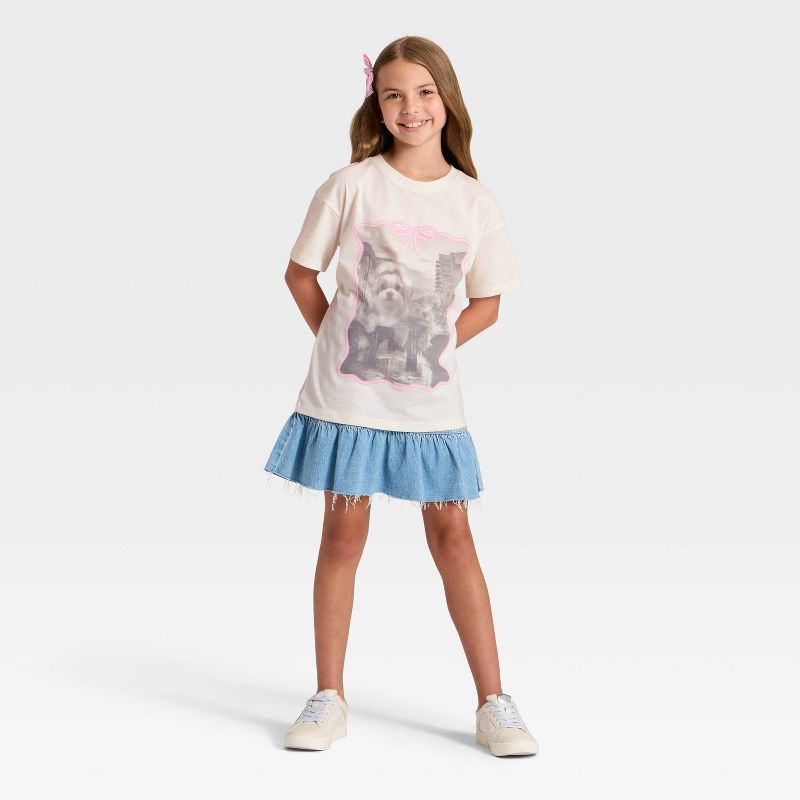 Girls' Short Sleeve 'City Dogs' Oversized Graphic T-Shirt - Cat & Jack™ Cream XS