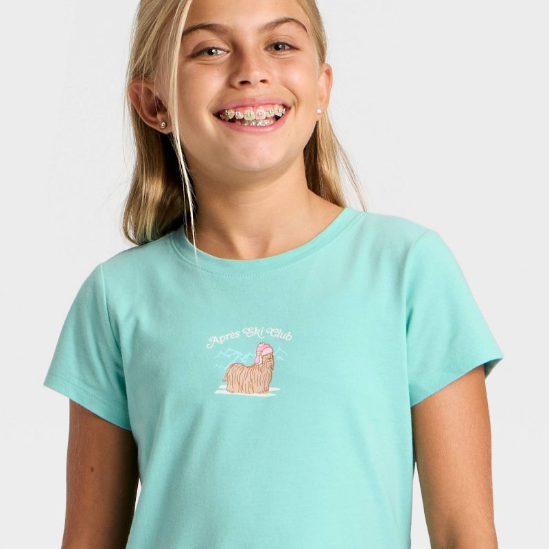 Girls' Short Sleeve 'Ski Dog' Graphic T-Shirt - Cat & Jack™ Aqua Green S