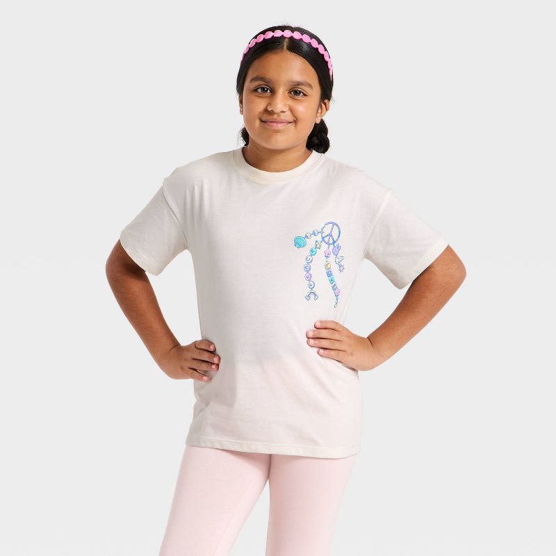 Girls' Short Sleeve Oversized 'Charm' Graphic T-Shirt - Cat & Jack™ Cream XXL Plus