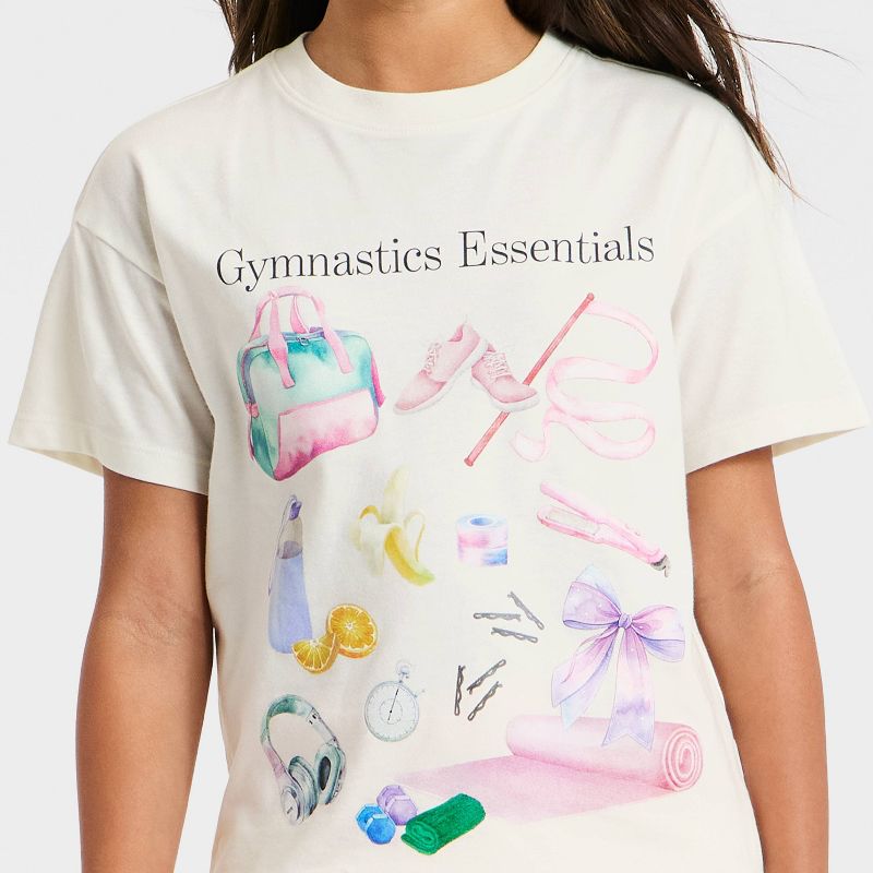 Girls' Short Sleeve Oversized 'Gymnastics' Graphic T-Shirt - Cat & Jack™ Cream M