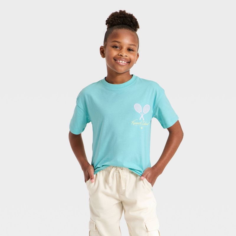 Girls' Short Sleeve Oversized 'Kiawah Island' Graphic T-Shirt - Cat & Jack™ Aqua Green XL