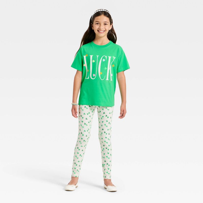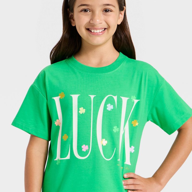 Girls' Short Sleeve Oversized St. Patrick's Day 'Luck' Graphic T-Shirt - Cat & Jack™ Green S