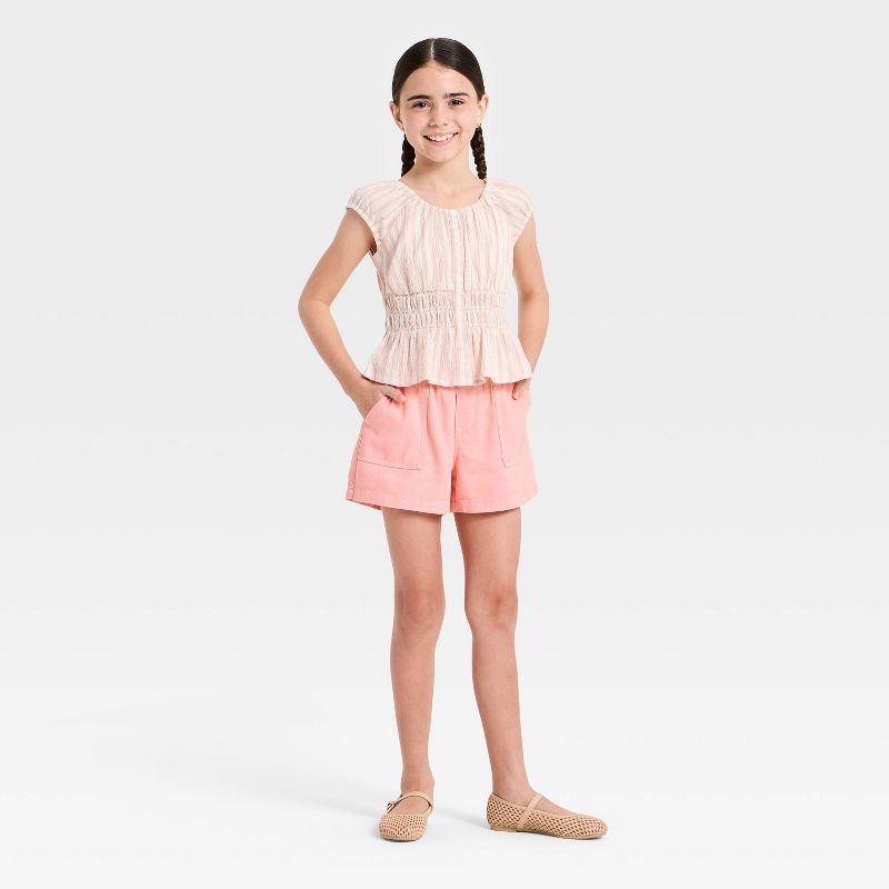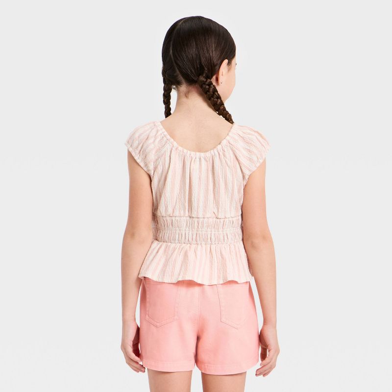 Girls' Short Sleeve Smocked Waist Striped Top - Cat & Jack™ Cream S