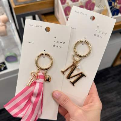 Initial "M" and Simulated Pearl Bag Charm - A New Day™ Gold: Purse Accessory Keychain