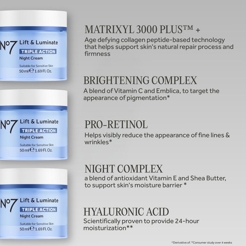 No7 Lift & Luminate Triple Action Night Cream - 1.69 fl oz