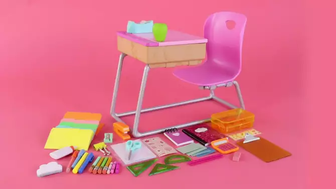 Our Generation Flying Colors School Desk & Supplies Accessory Set for 18" Dolls