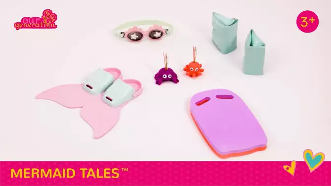 Our Generation Mermaid Tales Swim Fin and Accessories for 18" Dolls: 7-Piece Beach Set with Bath Accessories