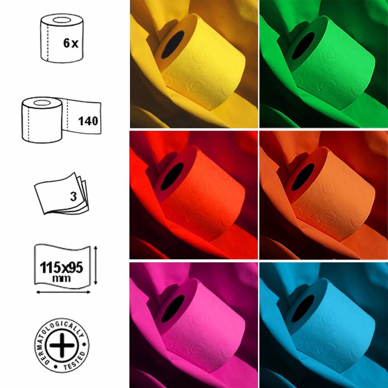 Roll-Lux Multicolor Gift Box Toilet Paper - 3-Ply Premium Quality, 6 Rolls, 140 Sheets Each, Vibrant Rolls