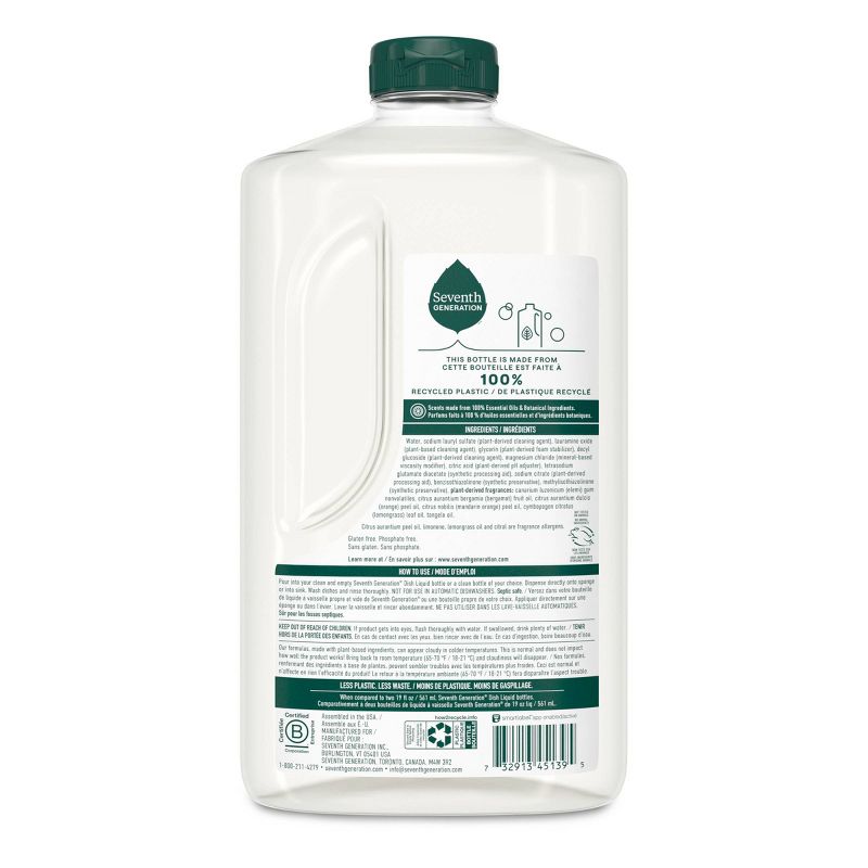 Seventh Generation Lemongrass & Clementine Dish Liquid Soap - 50 fl oz: Dye-Free, Phosphate-Free, Naturally Derived