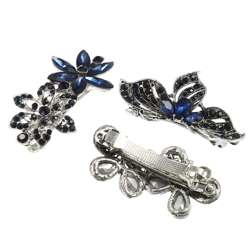 Unique Bargains 3 Pcs Hair Clips Hair Accessories for Women Hair Barrettes Sparkly Rhinestones Hairpin Blue Black