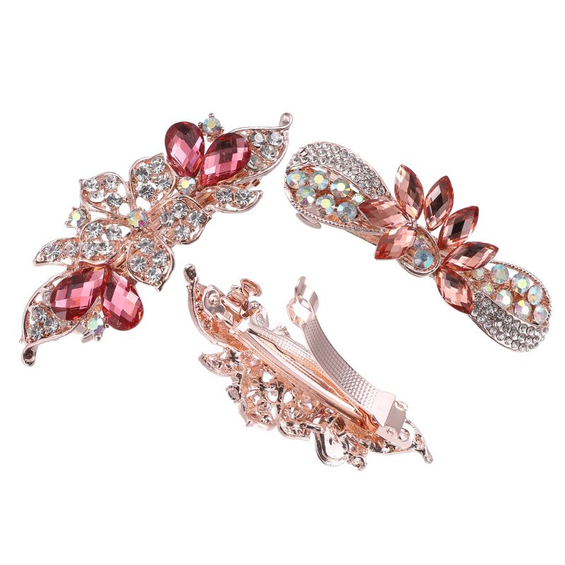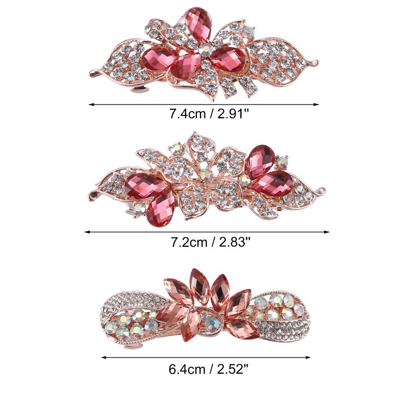 Unique Bargains 3 Pcs Hair Clips Hair Accessories for Women Hair Barrettes Sparkly Rhinestones Hairpin Pink